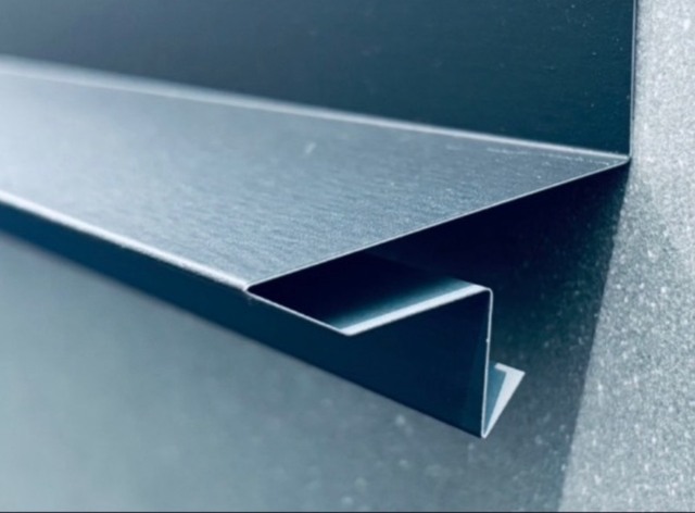 刀水切りは、建築の下端を美しく引き締める意匠性に特化した土台水切りです。 正面の見付を極限まで細く設計し、外壁のラインをシャープに演出。 2か所の曲げ加工による構造で、安定した納まりと美しさを両立しています。